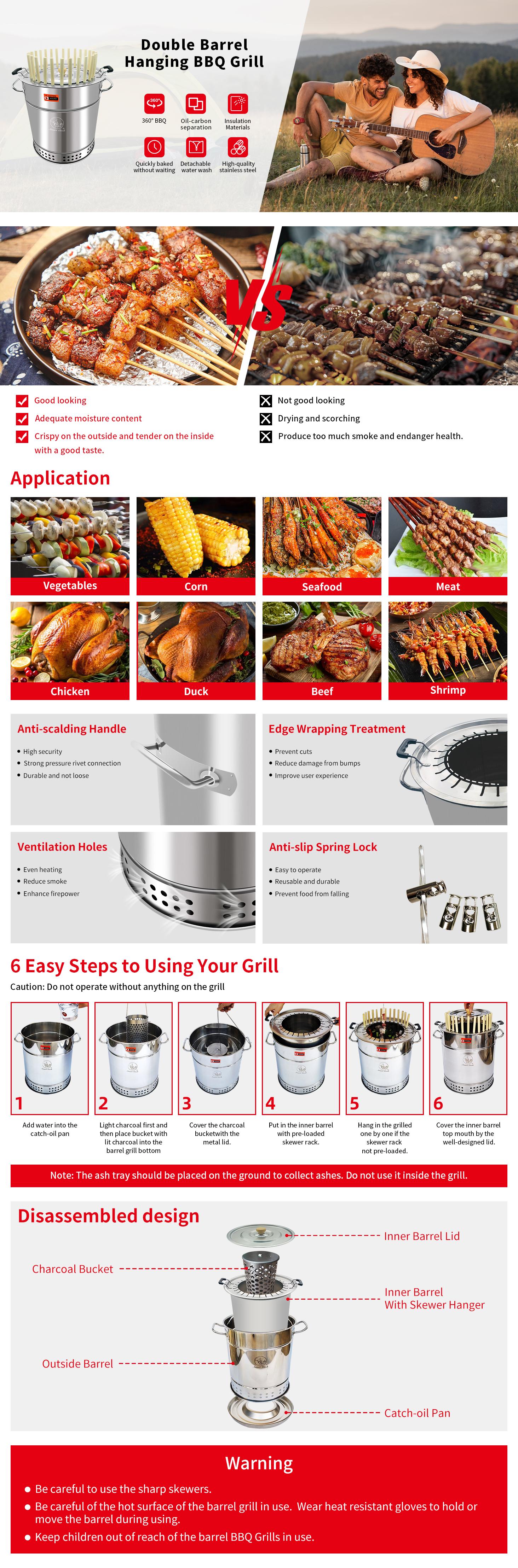 Mesh Barrel: Features a mesh design that allows for easy access to your barbecue grilling area, making it convenient to move around.